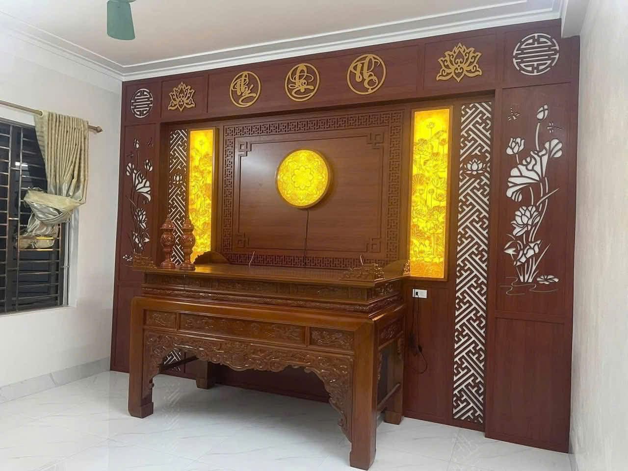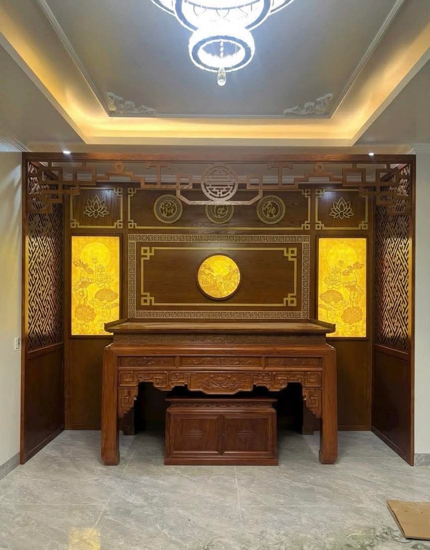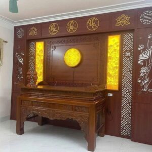 - Thẩm mỹ sang trọng: Với sự kết hợp giữa chất liệu gỗ tự nhiên (hoặc gỗ công nghiệp cao cấp) và công nghệ cắt CNC tinh xảo, vách thờ biến góc tâm linh trở thành một tác phẩm nghệ thuật truyền thống đầy tinh tế.