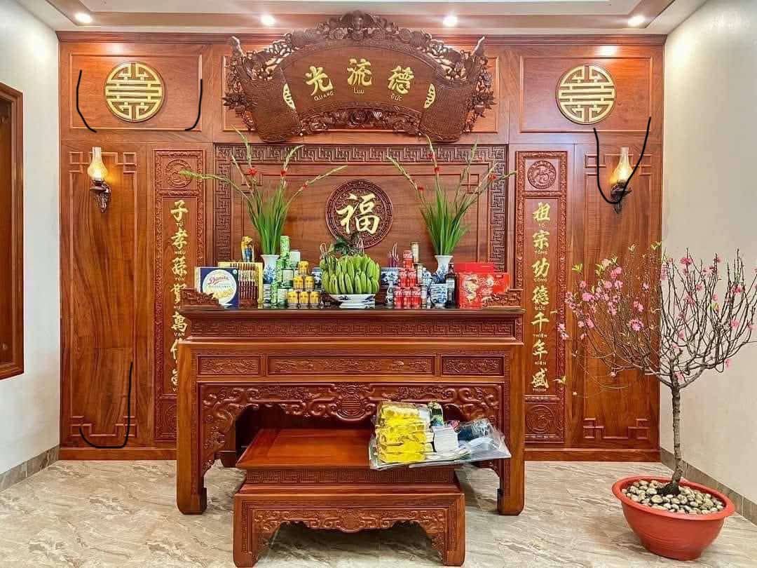 - Tạo sự tôn nghiêm, tách biệt: Vách thờ giúp phân chia không gian thờ tự với phòng khách hoặc các khu vực sinh hoạt khác, giữ cho nơi thờ cúng luôn thanh tịnh và kín đáo.